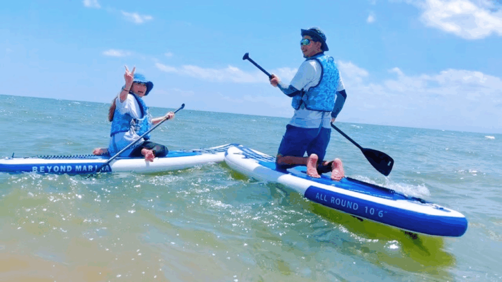長井浜リゾートでは、海水浴だけでなく、SUP(サップ)などさまざまなアクティビティが楽しめます。