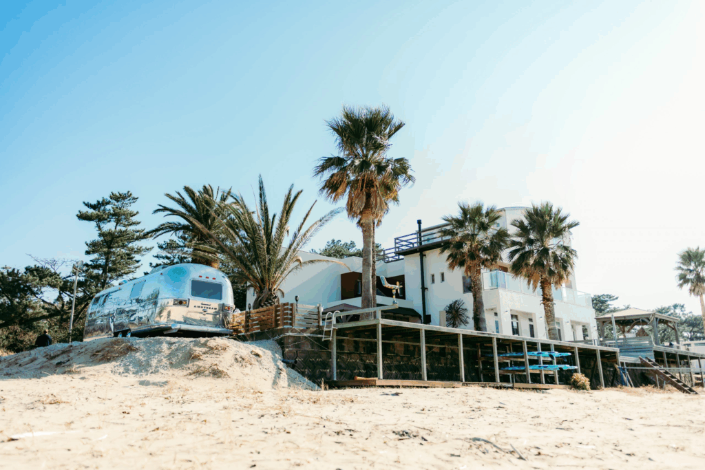 せっかくなので、チェックアウトがてら、エアストリームをもう一度見ていってください🙆‍♂️